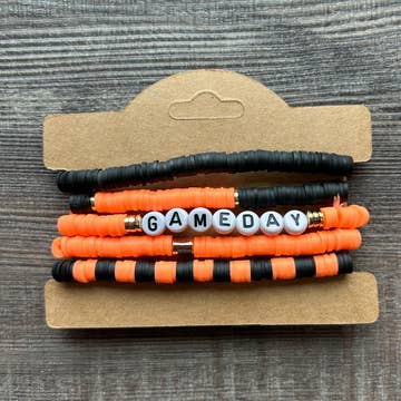 Clemson Tigers/ South Carolina bracelet Made at 7 inches Women's football gameday accessories Gold plated orange and purple gemstone beads
