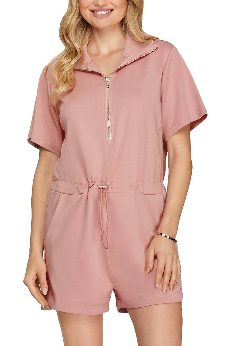 Loose Pocket Back V-neck Short Sleeved Jumpsuit