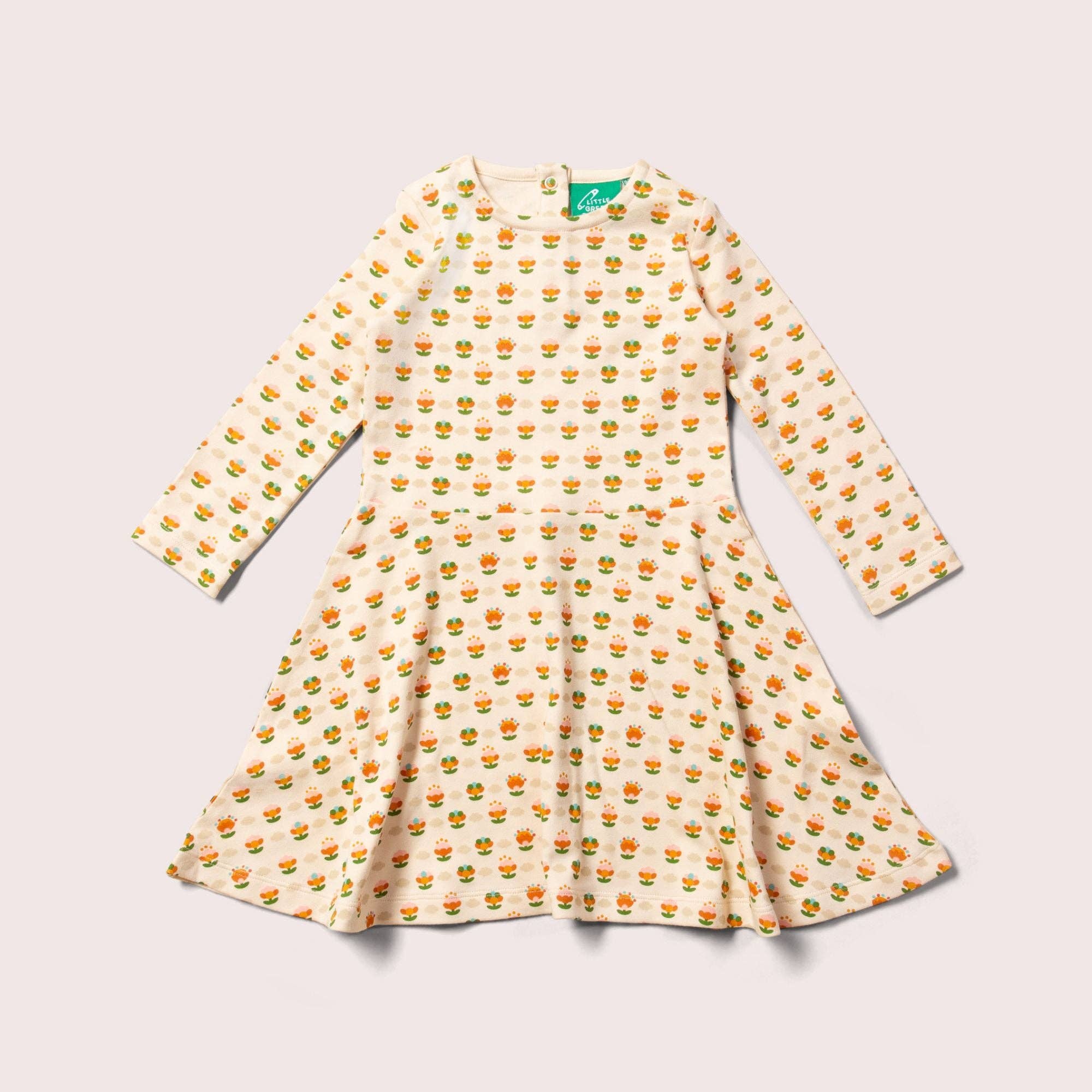 More about our Hazelnut Flowers Knitted Tunic Dress This classic dress comes in a delicate, beautifully soft knitted fabric that is amazingly comfy to wear, and will keep little ones warm and cosy all winter long. Extra Details: - 100% Organic & Fairtrade True Knit Cotton - A warm, long-sleeved A-line dress, perfect for keeping warm during colder months - Scallop trim - Front pockets - Ribbed neck and cuffs - Knee-length - Button opening at the back - Machine washable