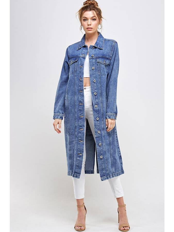 Long Trench Coat Denim Jean Jacket (OPEN PACK)