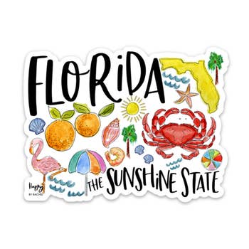 3x3 sunshine state Florida sticker. This sticker is made from thick, durable vinyl and is protected against scratches, water and sunlight!