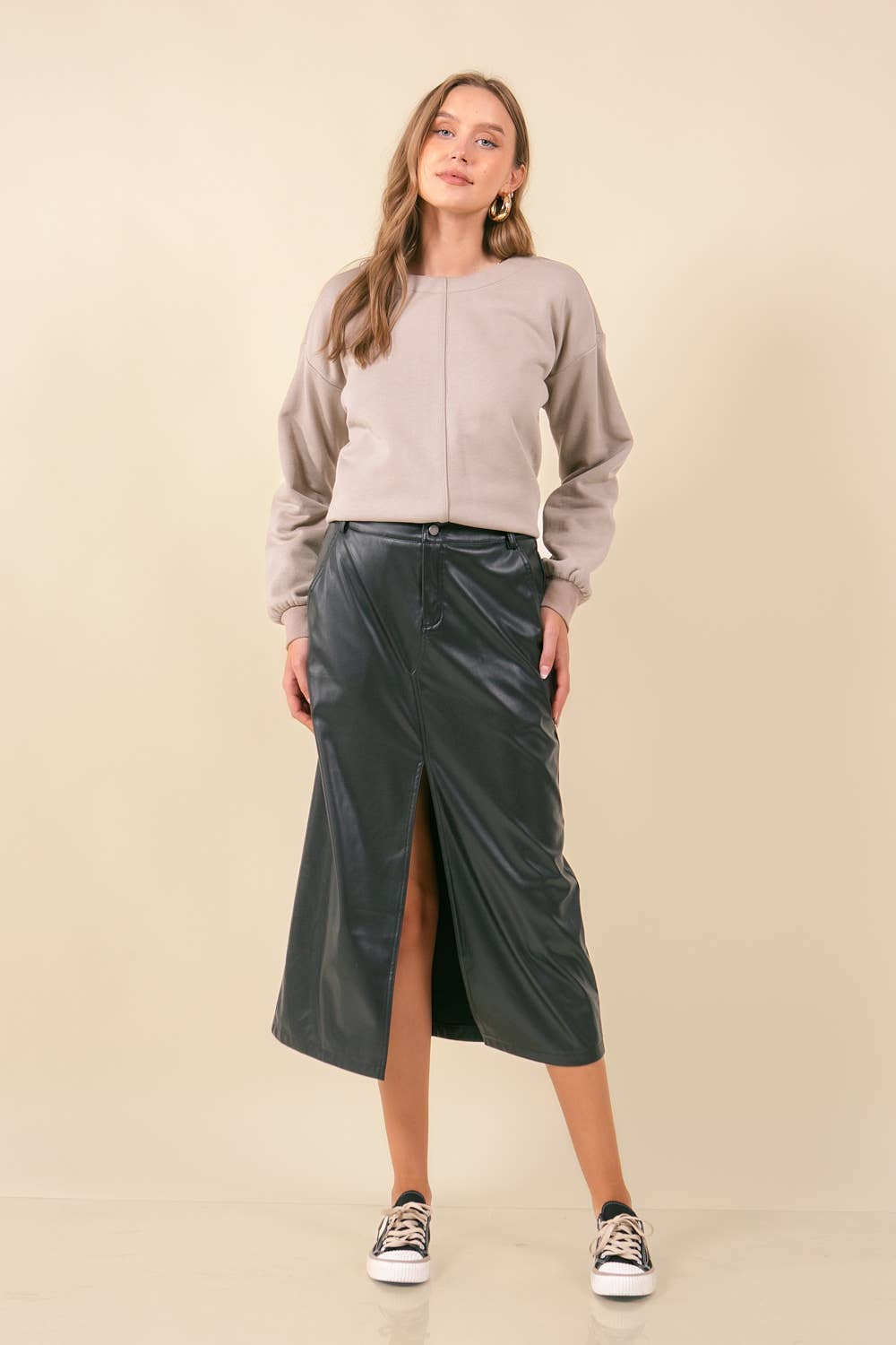Knit-PU Maxi Skirt
