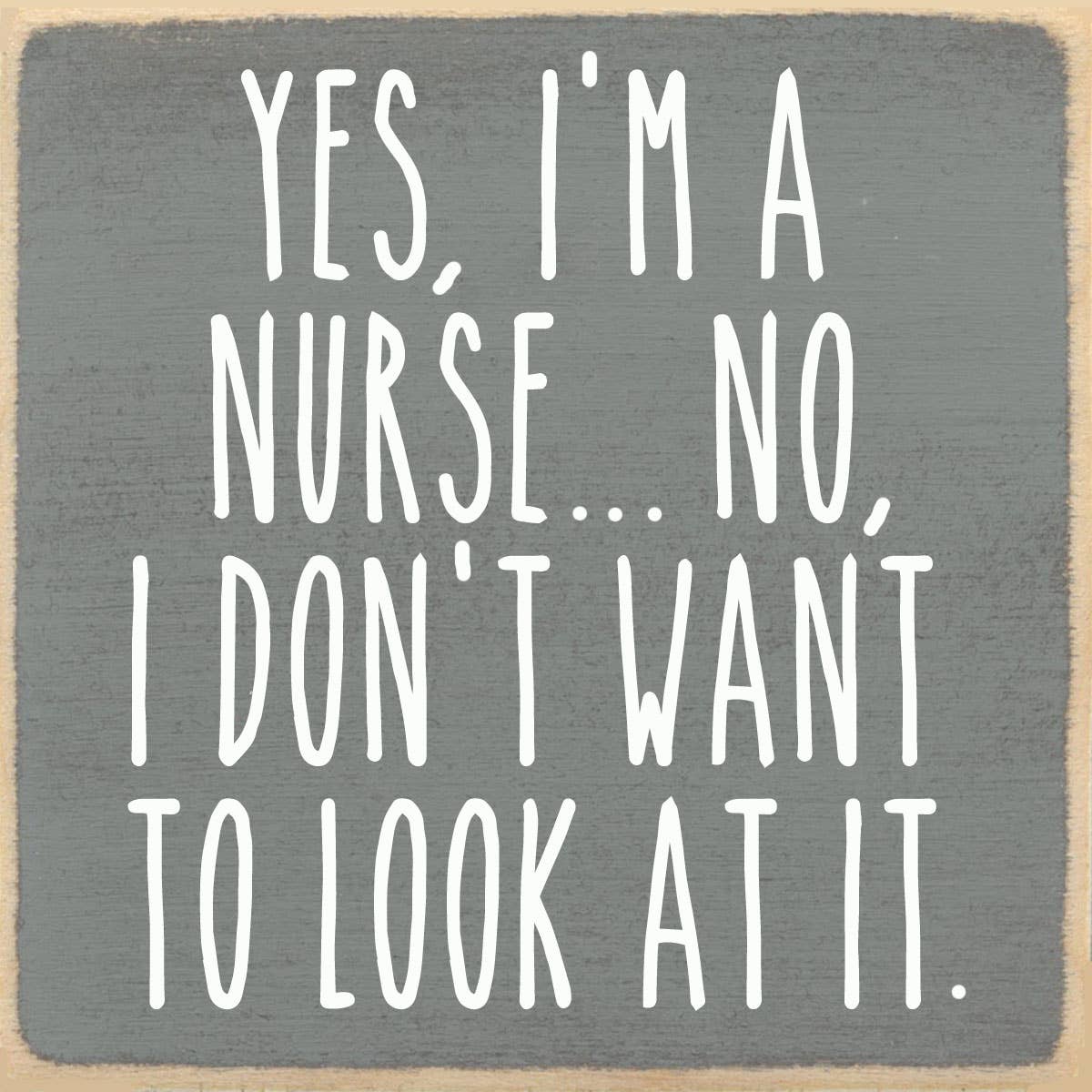 Nurse - Don't mess with me - I get PAID to stab people with sharp objects. - Height: 5 1/4" (not including the ribbon) - Width: 8 1/2" - Thickness: 1/8" - Making it very light and easy to hang just about anywhere. - Paint: Acrylic paint with an eggshell finish. It can be cleaned with a damp cloth. - Material: MDF (medium density fiberboard) is made with pressed sawdust and is a sustainable forest product. - Lettering: Our lettering is printed with ink, it is not vinyl. - Packaging: Each sign is shipped in a clear cellophane bag with a hang tab (see photo in ad).