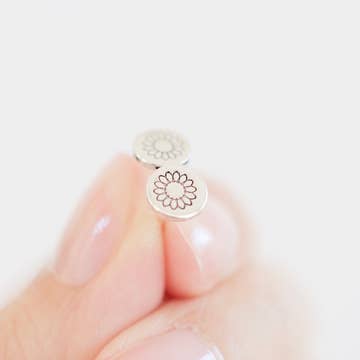 - Made from Sterling Silver or 14kt Gold FIlled. The 14kt Gold Filled option comes with Sterling Silver posts and 14kt Gold Filled stamped discs. (see last photos) Unicorn Horn sterling stud earrings. Each disc is hand cut, tumbled, stamped and welded by hand. Disc is about 1/4 inch (6.5 mm). Rubber clutches are included.