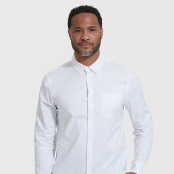 Fontana Top: Mandarin collar 100% breezy cotton men's button down long sleeve shirt. Stylist tip: This shirt is very casual that can be dressed up with khaki slacks or dressed down with shorts or jeans. Very versatile white go to top. Shell: 100% Cotton (Woven)