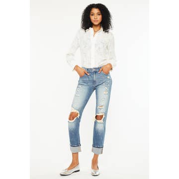 Women's Mid-rise Straight-leg Pants Ripped Game Day Jeans
