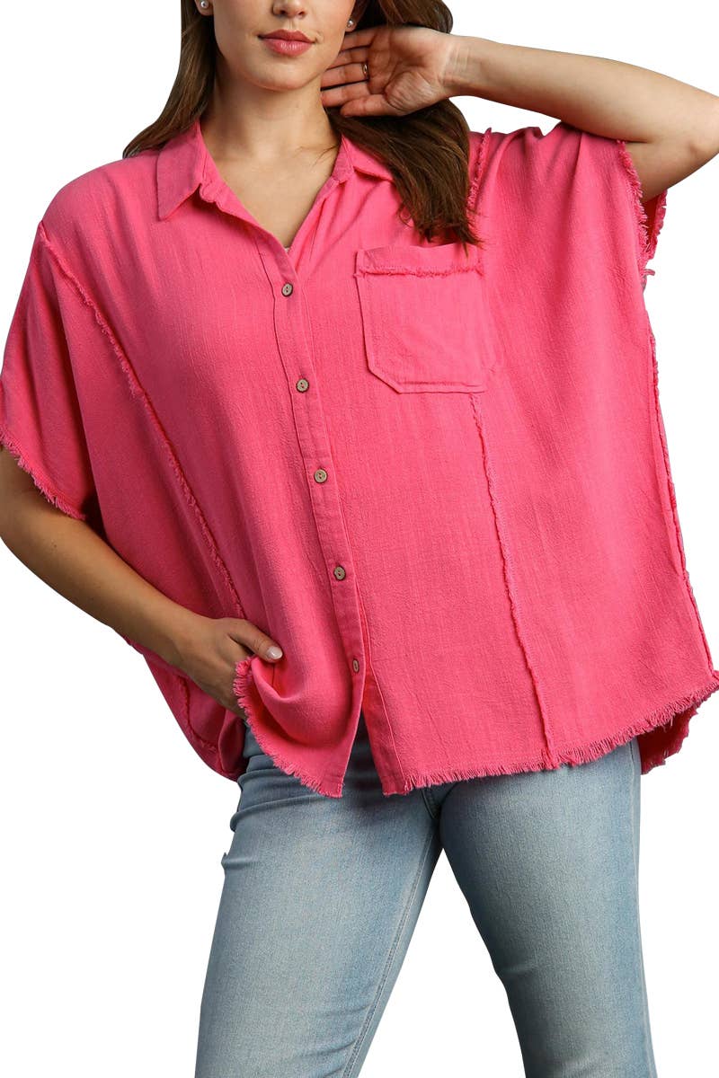 Fuchsia Oversized Sleeveless Button-Down Shirt with Slits