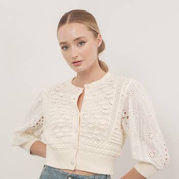 Crosa - Crochet Hollow-Out Short-Sleeve Cardigan