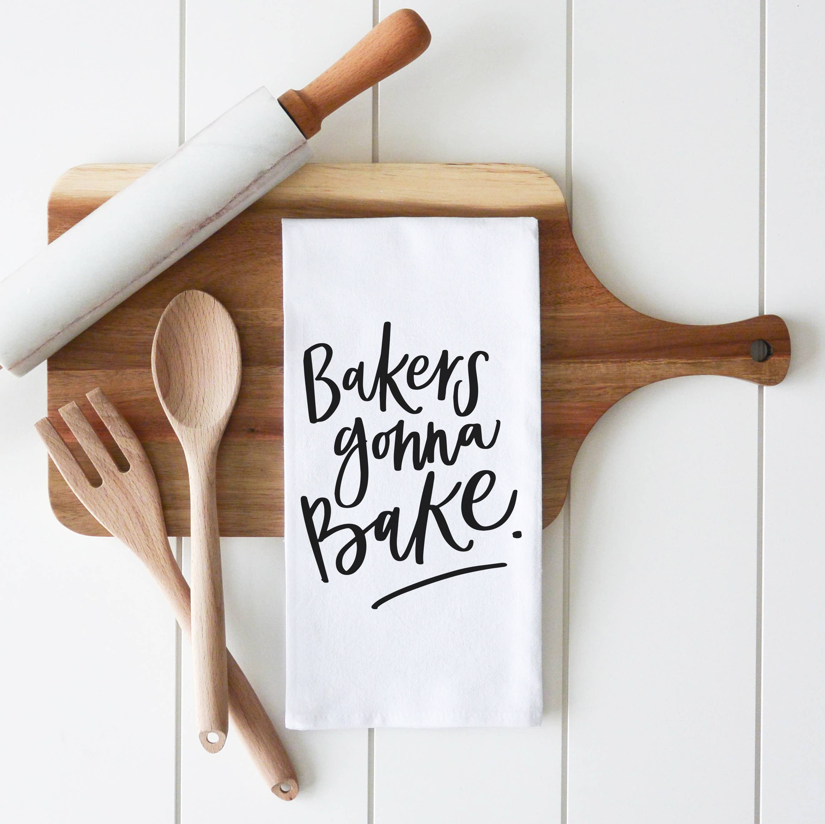 "Let's get baked." Spice up your holiday kitchen with this 100% cotton tea towel!