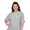 Elevate your casual style with the DAIRI 2223 SV1 top. This silver gray blouse, crafted from a comfortable blend of 65% cotton and 35% rayon, is perfect for the spring/summer season. The V-neck and short sleeves lend a relaxed yet chic vibe to the top, suitable for various occasions. The missy fit ensures a flattering silhouette for most body types. Care for this piece is simple - it's machine washable. Made from Sousdi, a hand-woven, natural Moroccan cotton, this top not only looks good but feels great too.