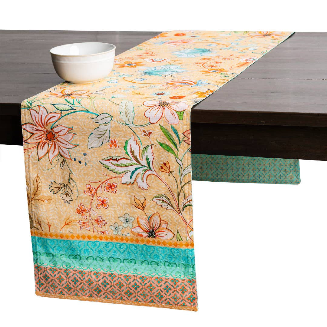 Made from 100% cotton, this double-layer table runner features coordinated seasonal patterns on both sides — ideal for dressing up your dining table with warmth and charm during Thanksgiving gatherings. Part of our Thanksgiving collection, it adds festive elegance to your home and makes a meaningful gift for family, friends, hosts, or anyone who loves to celebrate the season around the table. Designed in Europe and crafted in India, this product seamlessly blends seasonal beauty with everyday practicality.