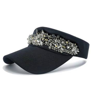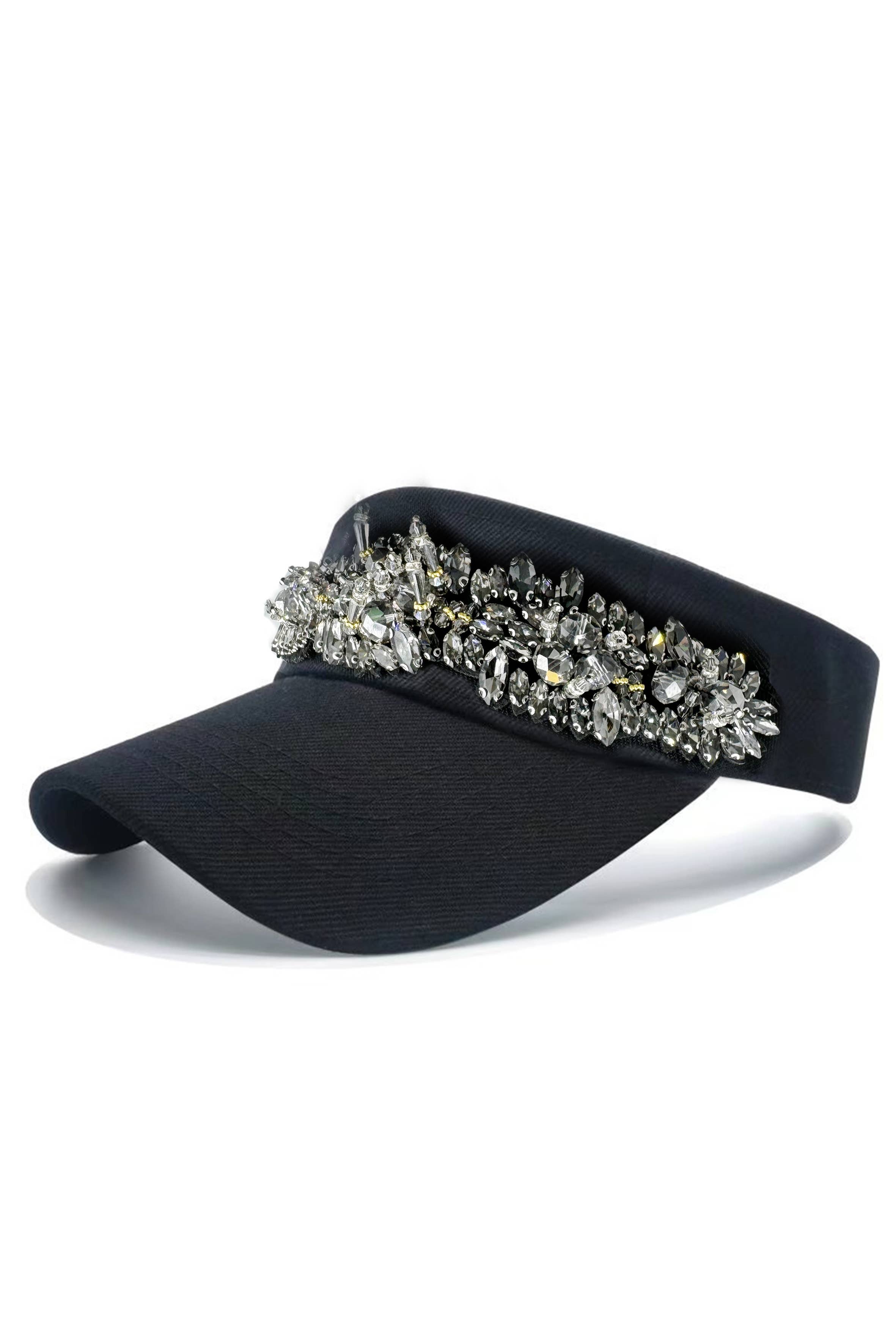Bling Rhinestone Embellished Twill Acrylic Velcro Back Visor -Brim Size: 3" -100% Acrylic