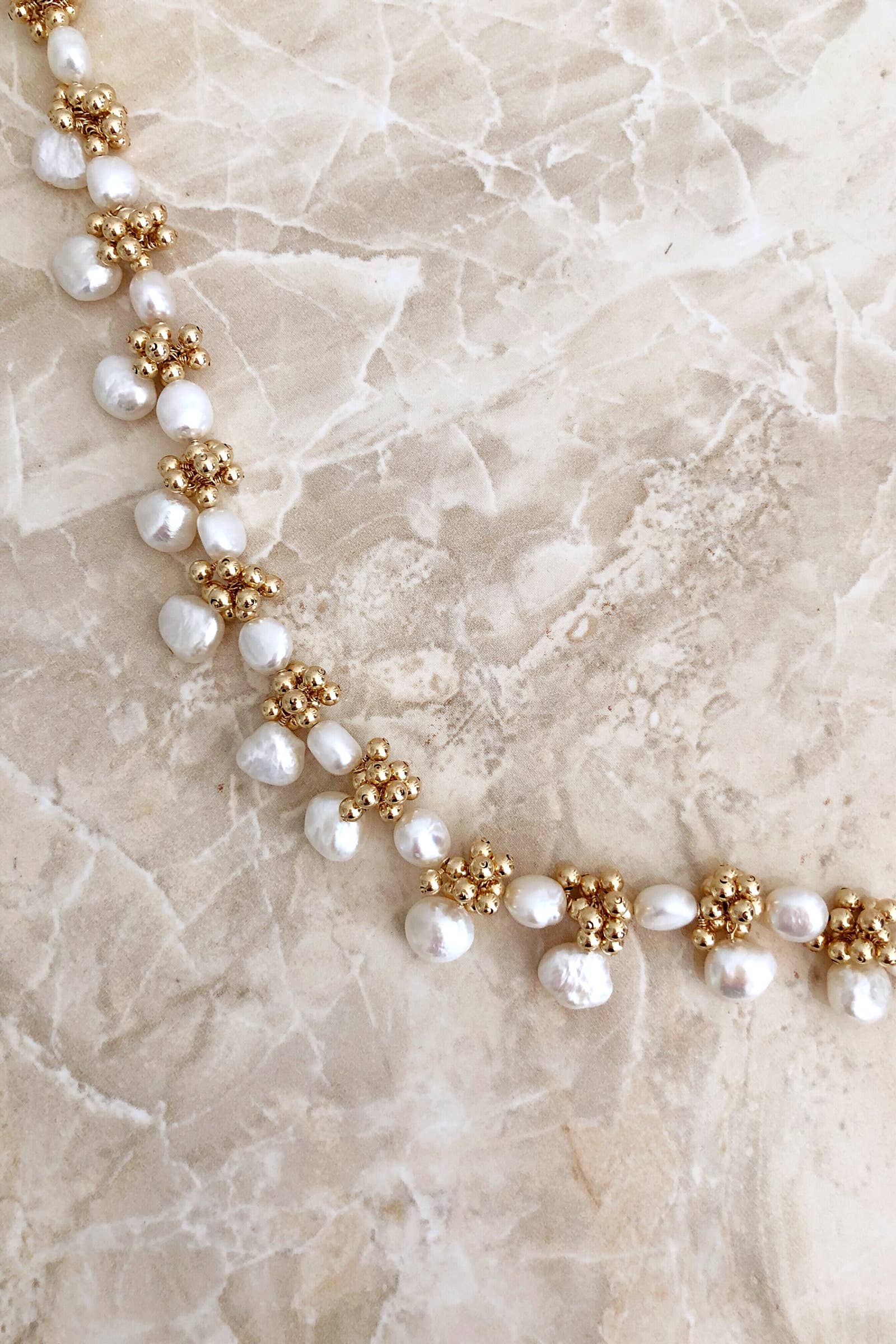 The biwa eyelet necklace is composed of natural freshwater biwa pearls signature clustering. Due to the nature of handmade, each one is slightly different and unique to you. Closure: lobster clasp. Measures approximately 16" adjustable to 18".