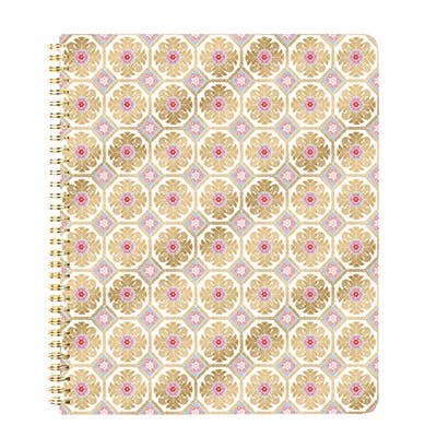 "Passion" Gold spiral binding allows notebook to open easily and lay flat Double sided with unique full color illustrations on every page Sturdy, durable cover with delicate gold foil accents Convenient size for carrying in purse, backpack or briefcase 106 full color pages of soft, premium, thick paper Dimensions: 7” x 9 x 1” SKU# DP028 *Minimum;4 per style