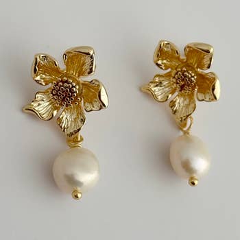 Flower And Pearl Stud Earrings