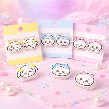 This mini hair claw set is the one you need! A boxed set with a mix of mini bunny hair claws and a mix of mini bear hair claws along with small hair ties. The hair ties are super soft, no tug and thin, perfect for those cute pigtails or braids. Clip the hair claws throughout to make that fun style. **WARNING: Choking hazard, small parts. Not for children under 3 years old. **Each box is a set of random colors, not necessarily the colors shown in photos.