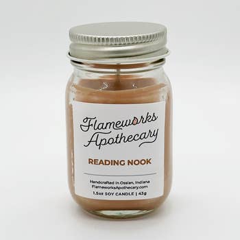 Cozy up with the Reading Nook candle, the perfect companion for every book lover’s favorite spot. Part of our Literary Collection, this candle combines fern, tea leaves, mint, and bergamot to create a soothing atmosphere inspired by curling up in your home library with a cup of tea, surrounding by houseplants. Light it while diving into a new novel, revisiting an old favorite, or simply surrounding yourself with bookish comfort. Fragrance Notes | Top notes: green fern, bergamot, earthy mint Middle notes: tea leaves, black tea, bergamot Base notes: jasmine, lavender, houseplants Product Details | 9oz candle | Burn time: 50–60 hours 100% soy wax (vegan & kosher) Cotton wick (lead & zinc free) Phthalate-free fragrance oils Dimensions: 2.86" D x 3.5" H Hand-poured in Illinois, USA Perfect for book clubs, reader gifts, library décor, and cozy reading nights at home.