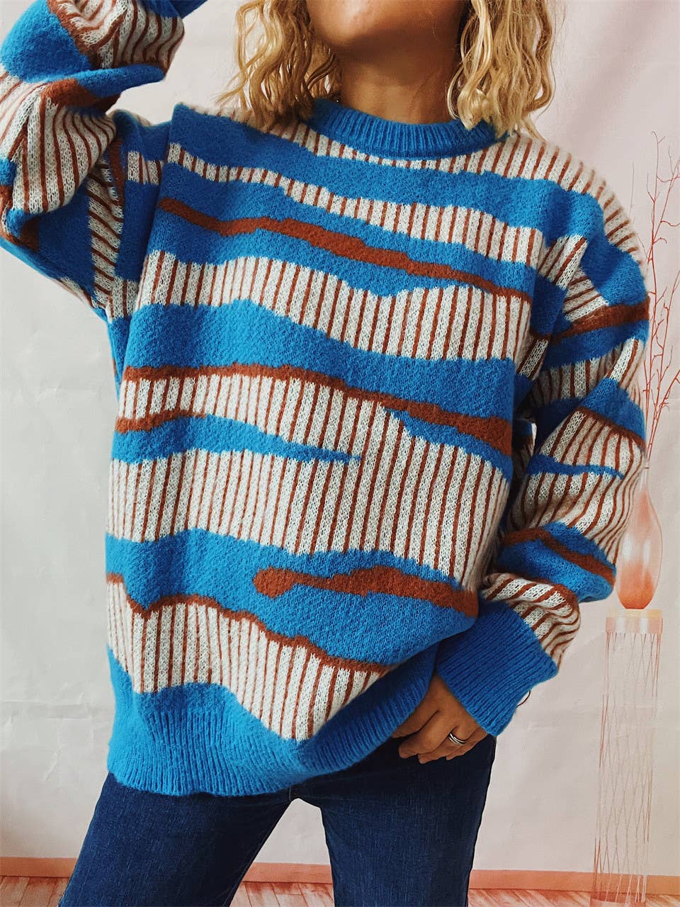 SKU: HJW01743-Blue-S Made in China Aesthetic: Casual and Classic Care Instructions: Hand wash Fit: Contemporary Neckline: Crew neck Occasion: Everyday Season: Fall/Winter Sleeve Length: Long Sleeve Product Language: English Weight: 450 g (15.87 oz) Production: Fair trade