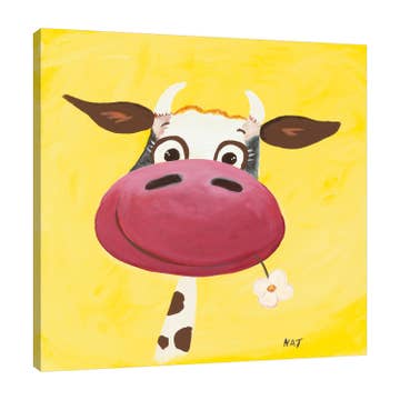 Derpy cow watercolor print. This print comes in two size options: 8"x10" or 11"x14". All prints are made using a bright white enhanced mat photo paper, backed with a thick piece of mat board backing and packaged in an eco friendly plant-based clear storage bag to preserve the print until it finds it's new home. I ship packages in recycled boxes when I can to help save the planet. All prints are signed with artist signature.