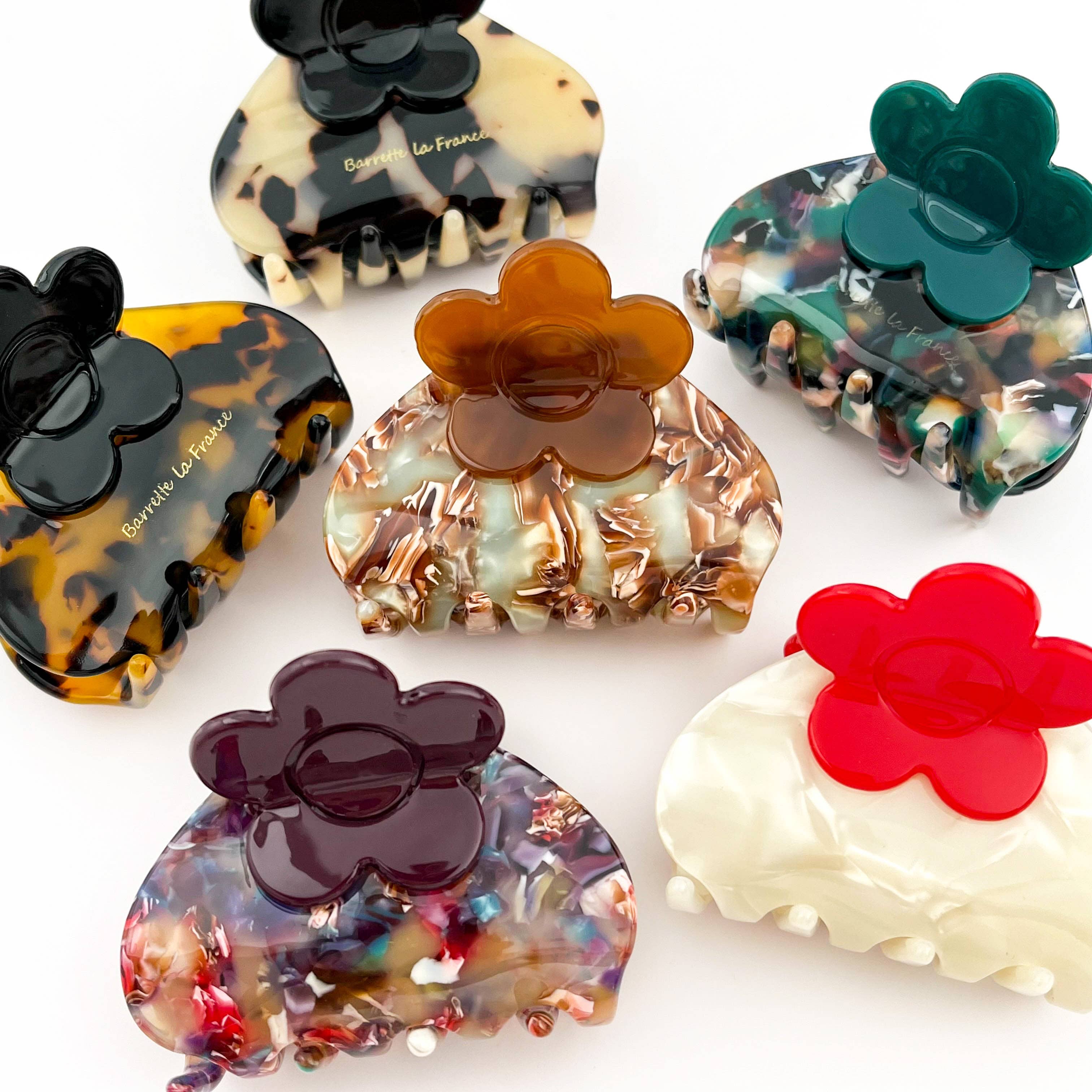 Material - Acetate Handling Process- Handmade Size: 2.5*2*2cm Weight: 8g Description: The Mini Solid Flower Hair Claw Clip is a delightful and versatile accessory that adds a touch of elegance to any hairstyle. Shaped like a delicate flower, this clip is made from durable materials and features a solid color, making it a chic yet subtle addition to your hair accessories collection. Its compact size is perfect for securing small sections of hair or adding a decorative accent to your look. Suitable for all hair types, this flower clip is ideal for both casual and formal occasions, providing a stylish and feminine touch to your ensemble.
