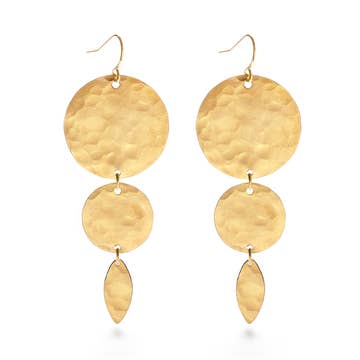 Earrings are made using brass sheet cut into Solid Teardrops and hammered by hand. Ear wires are base metal. Measurements: Medium Solid Teardrops are roughly 7/8" at the widest point and 1 3/8" tall.