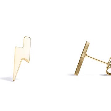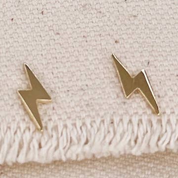 Mini lightning bolt stud earrings. Choice of gold-fill or sterling silver. 1/2″.