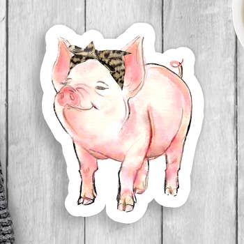 Whimsical sticker depicting the phrase "When Pigs Fly". These highest-quality decals can withstand application to car bumpers, water bottles, laptops and more. Measures approximately 5" wide and 4" high.