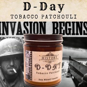 On June 6, 1944 the Allied Forces of Britain, United States, Canada, and FranceĀ attacked German forces on the coast of Normandy, France. With a huge force of over 150,000 soldiers, the Allies attacked and gained a victory that became the turning point for World War II in Europe. Experience a unique blend of tobacco leaf, patchouli and musk asĀ you join the Allied troops on the beaches of Normandy. SCENT NOTES: * Top:Ā Tobacco Leaf * Middle:Ā Patchouli * Base:Ā Vanilla, Musk CANDLE INFO: * Size: VolumeĀ 7.5oz | 212g Net Weight |Ā 2.5 x 2.5Ā x 3.5" * Beautiful Amber Jar with Black Lid * Burn Time: 40+Ā Hours * Wick: 100% Cotton (Lead and Zinc Free) * Wax: Proprietary Soy Based Wax Blend * Premium Fragrance Oil * Made in the USA | Hand-poured inĀ Pensacola, FL