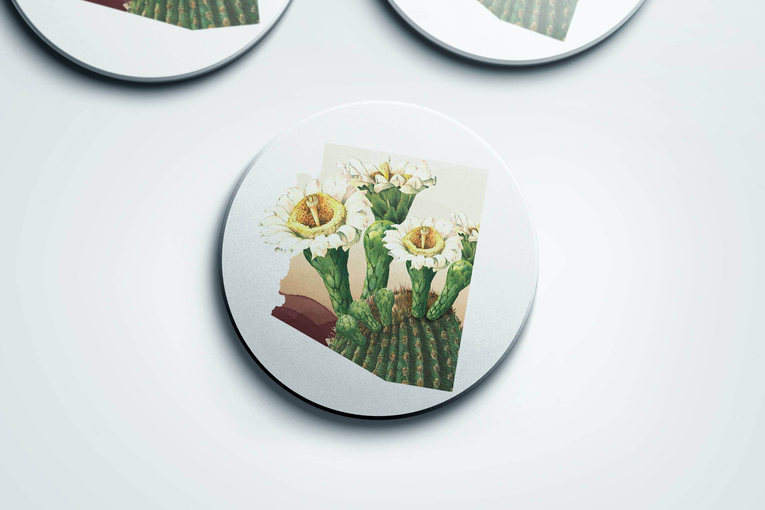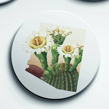 Cactus 4" round alder wood coaster with cork feet.