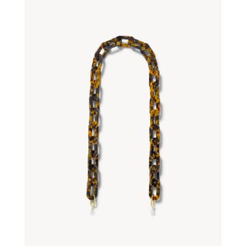Sunglasses straps. Minimalist gold metal chain with tortoiseshell-shaped pieces and adjustable ends that you can use for any type of glasses, both prescription and sunglasses.