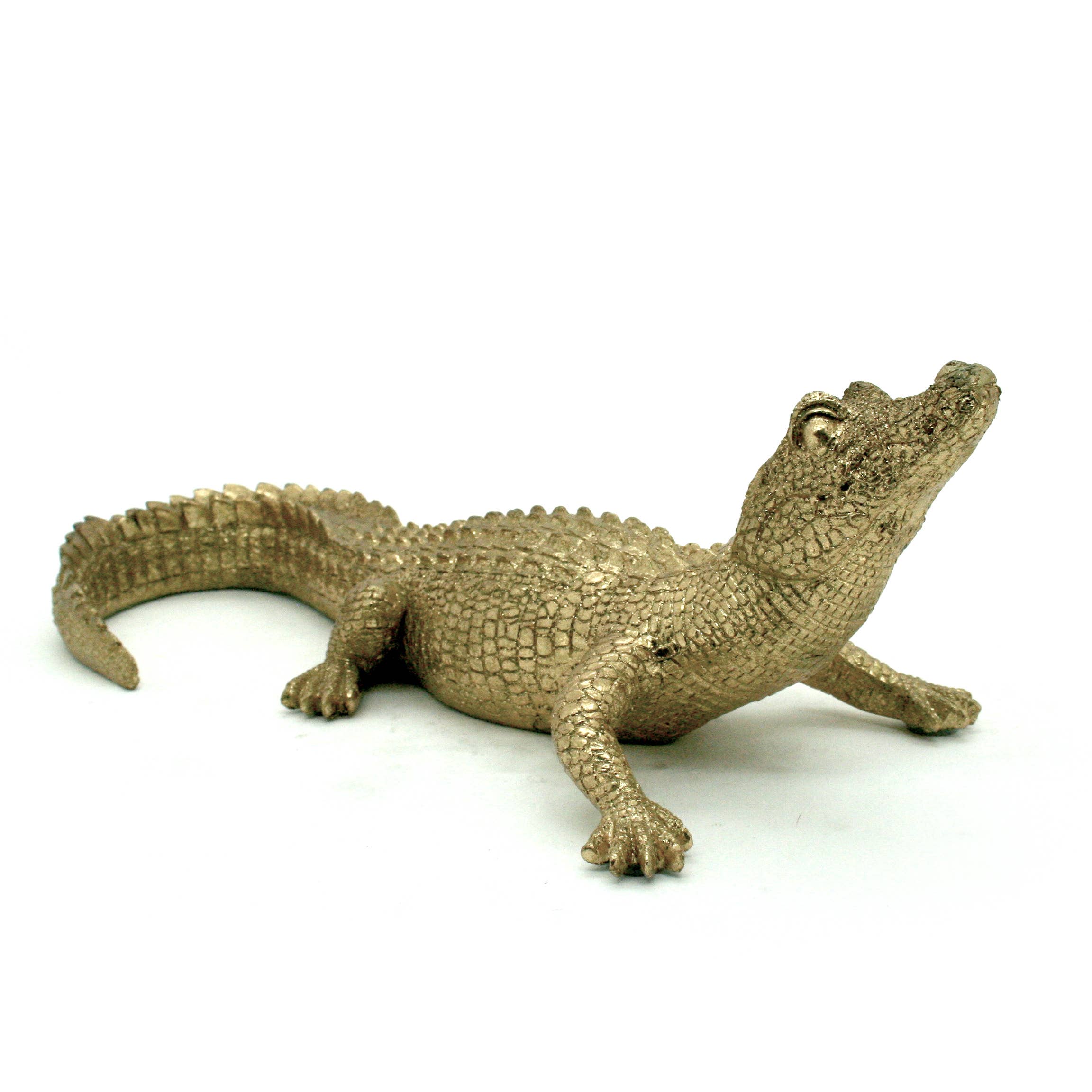 This Gold Crocodile Bowl is beautifully cast from resin and captures all the details of this prehistoric reptile. Great gift/decor for the exotic animal lover. Measures 18.7x6.1x4.1" H.