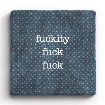 This coaster features our middle finger design. Multi-functional little art pieces make great gifts, and are a great size (and price) for buyers. This design is perfect for the irreverent. * Transparent silver glass, printed in white enamel * 4" square, with rubber bumpons on bottom * Dishwasher safe * Handmade in the USA Coasters are screen printed, fused glass. Glass is cut, and screen printed by hand with fine glass enamels, then fused overnight to 1415 degrees in a kiln. Each piece is made by artist Laurie Freivogel in her Oak Park studio. This design is part of a series and has other matching housewares!