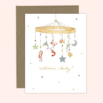 Bloomwolf Studio - Wholesale Baby Card - Baby Mobile Greeting Card - New Baby Card