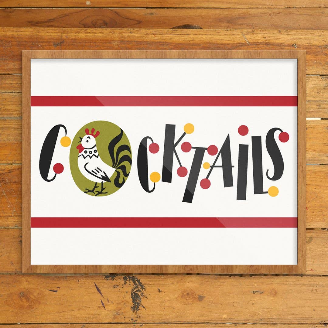 11'' x 14'' Cocktail Dots & Rooster Print