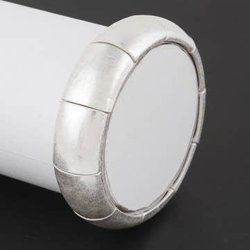 Simple yet stunning! The open circle decorating this hammered silver metal cuff bracelet looks lovely alone or worn with others. • Shiny silver plate finish over hammered brass • Latches at circle to open and close for easy wear • Handmade in India • Measurements (approx.) 1" wide • Materials Silver-tone Metal
