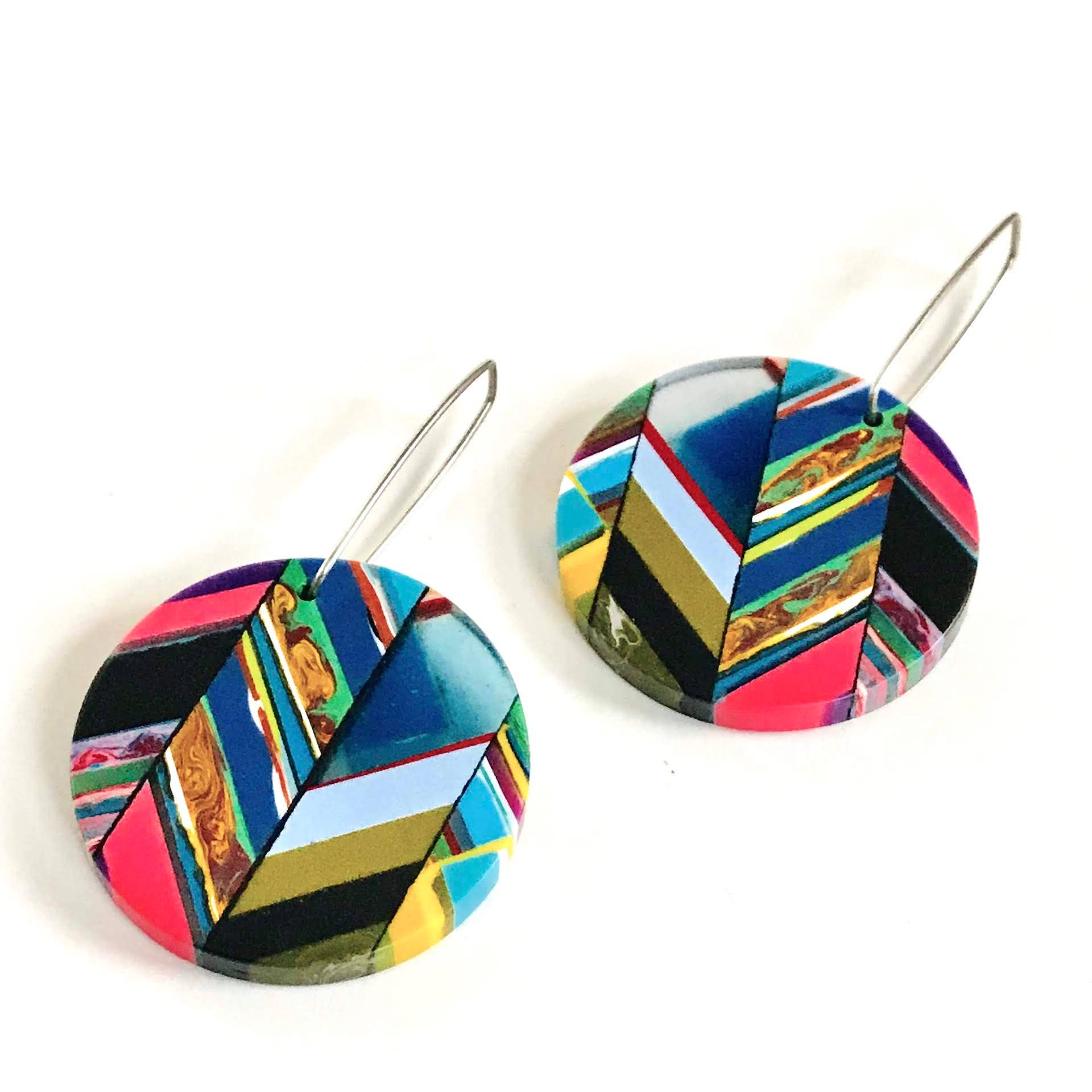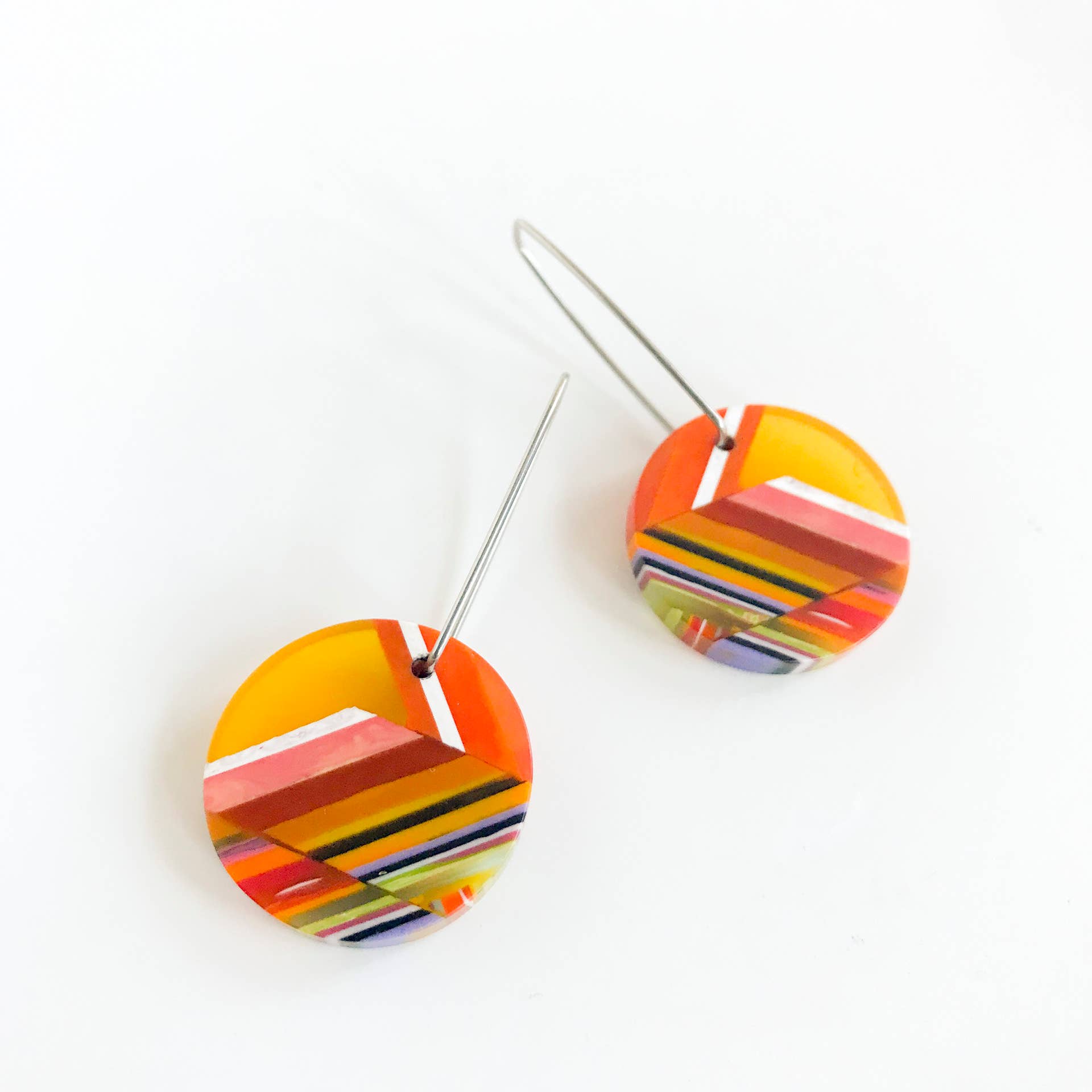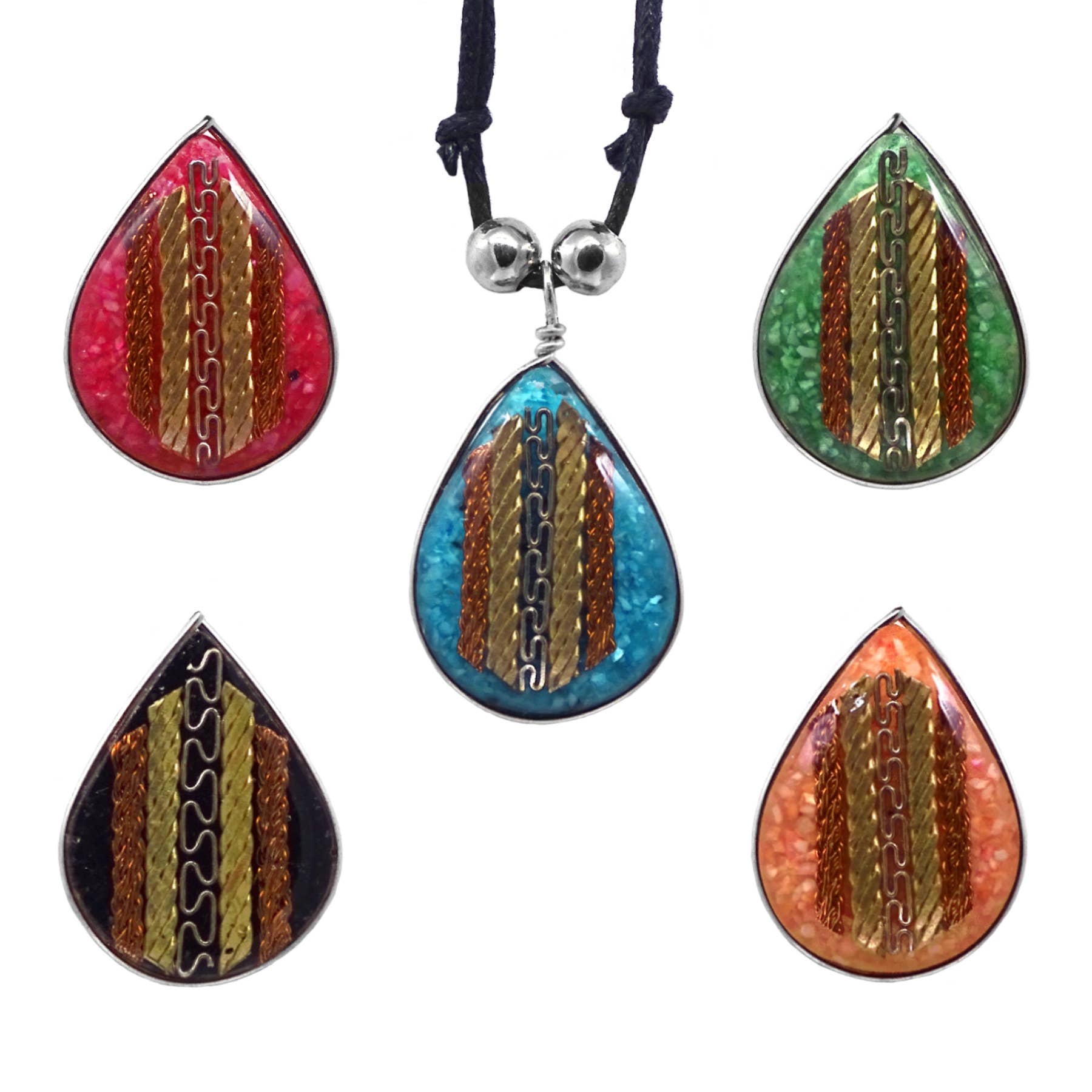 Hand-casted polyester resin single triangle, trapezoid, circle or rectangle (35mm to 55mm Long) pendants on adjustable cords. Please note these necklaces come in assorted triangle, trapezoid and circle shapes.