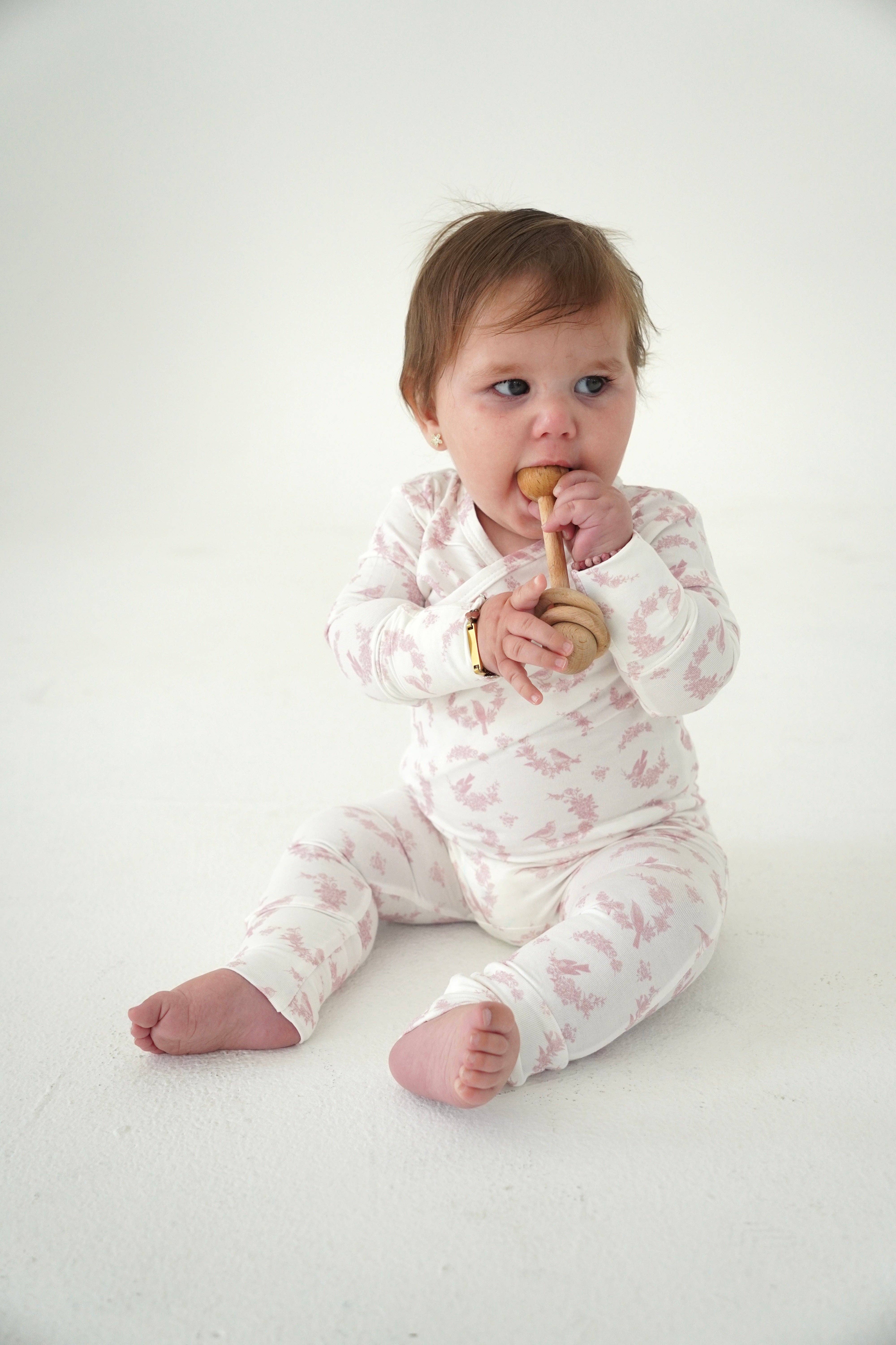 Wholesale Vintage Floral Blush Bamboo Footie