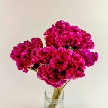 Crystal Beauty celosia turns into a rustic peachy/pink color once dried. It works well in natural themed floral work but also pairs well in many color palettes. A great product to have on hand! Head size: 1-3" inches wide Total Height: 15 inches (Celosia had a tendency to shed seeds.)