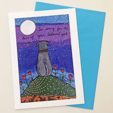 Pet Sympathy Card. Printed in the USA on FSC certified paper from managed forests. Comes with color co-ordinated envelope. Packaged in cello sleeve.