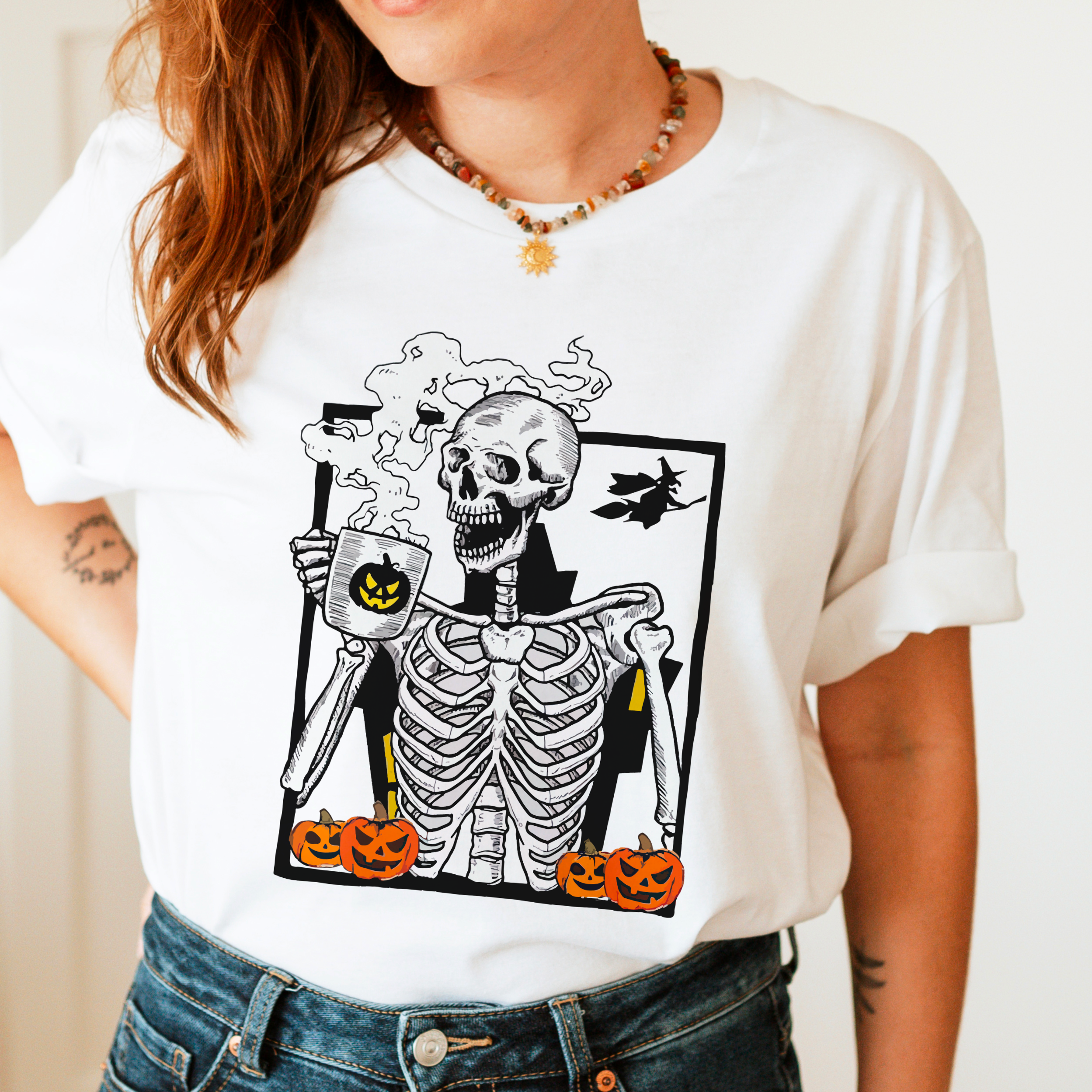 Floral Skeleton Pumpkins Graphic Tee