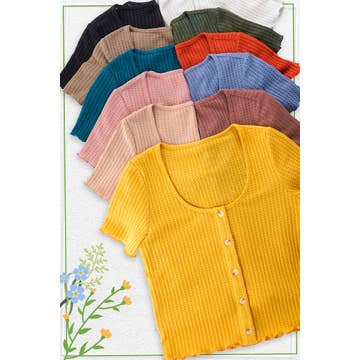 WHOLESALE ROUND NECK HALF SLEEVE MARTINI BEADS RIB TOP