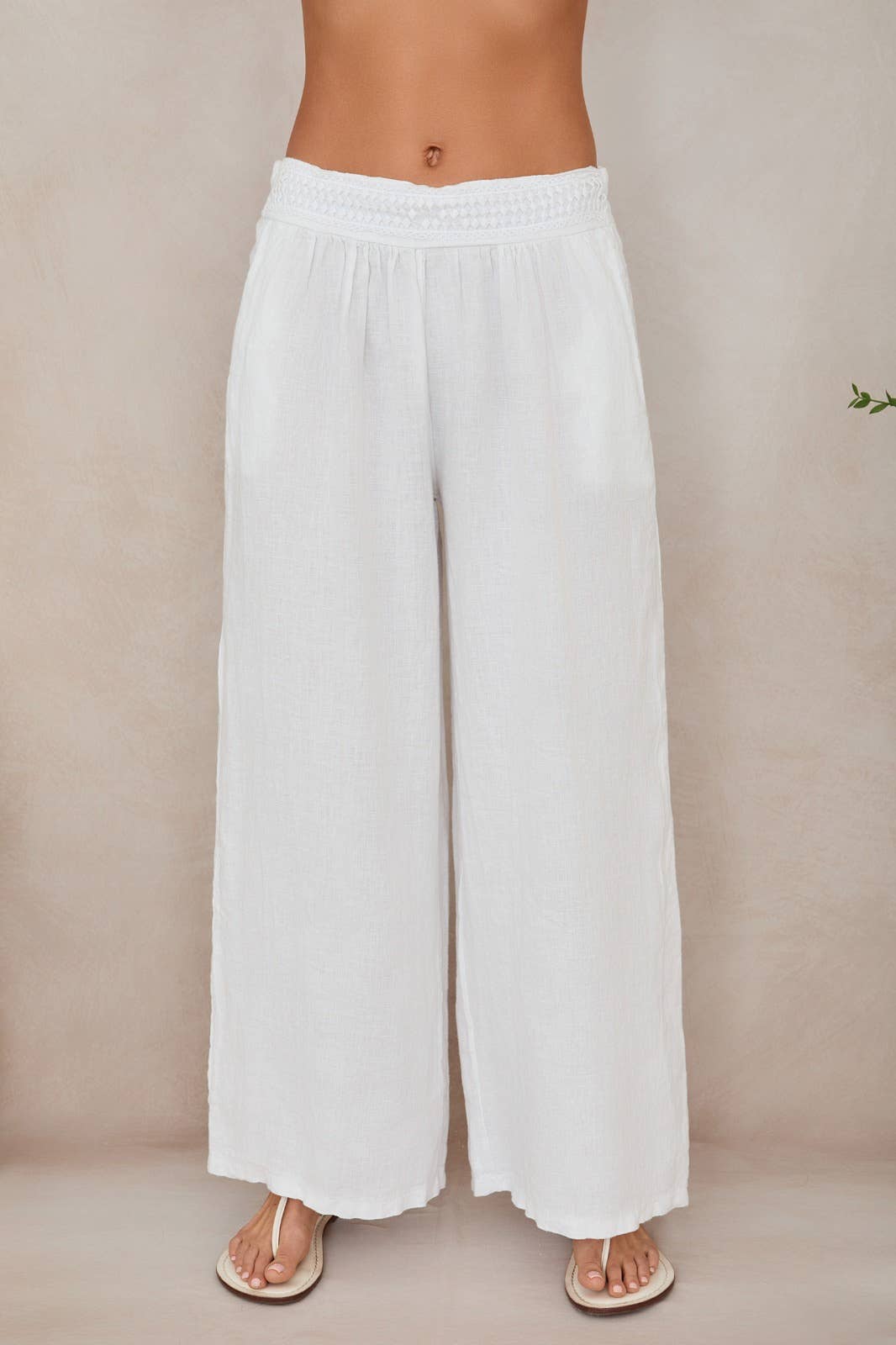 LINEN PANT WITH OVERLAY (10976/154110/154211-PANT-BEIGE)