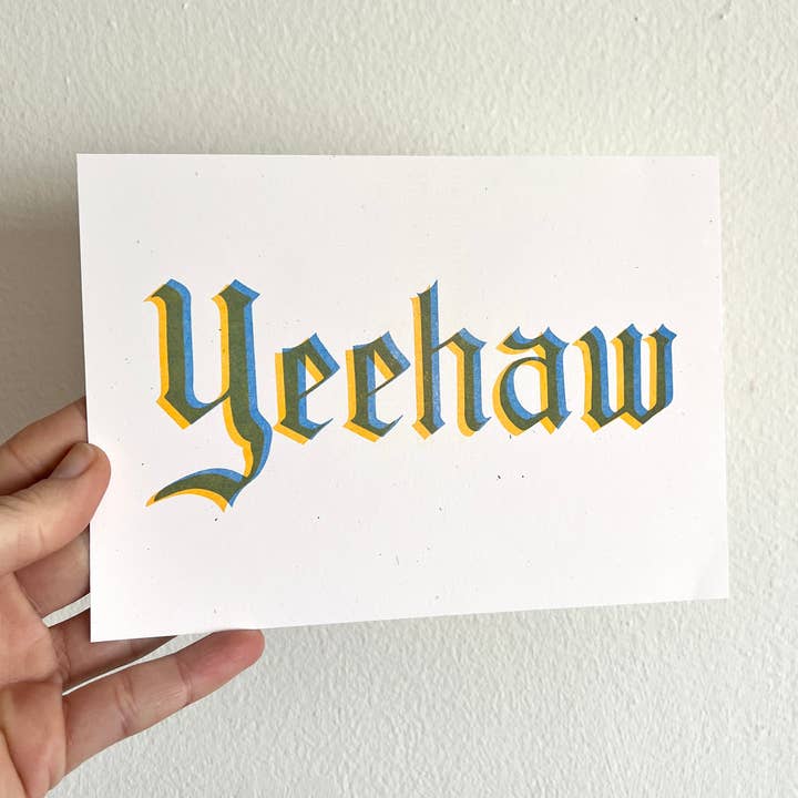 Kirsten Bauer - Wholesale Art Print - Yeehaw Risograph Print, Red & Pink
