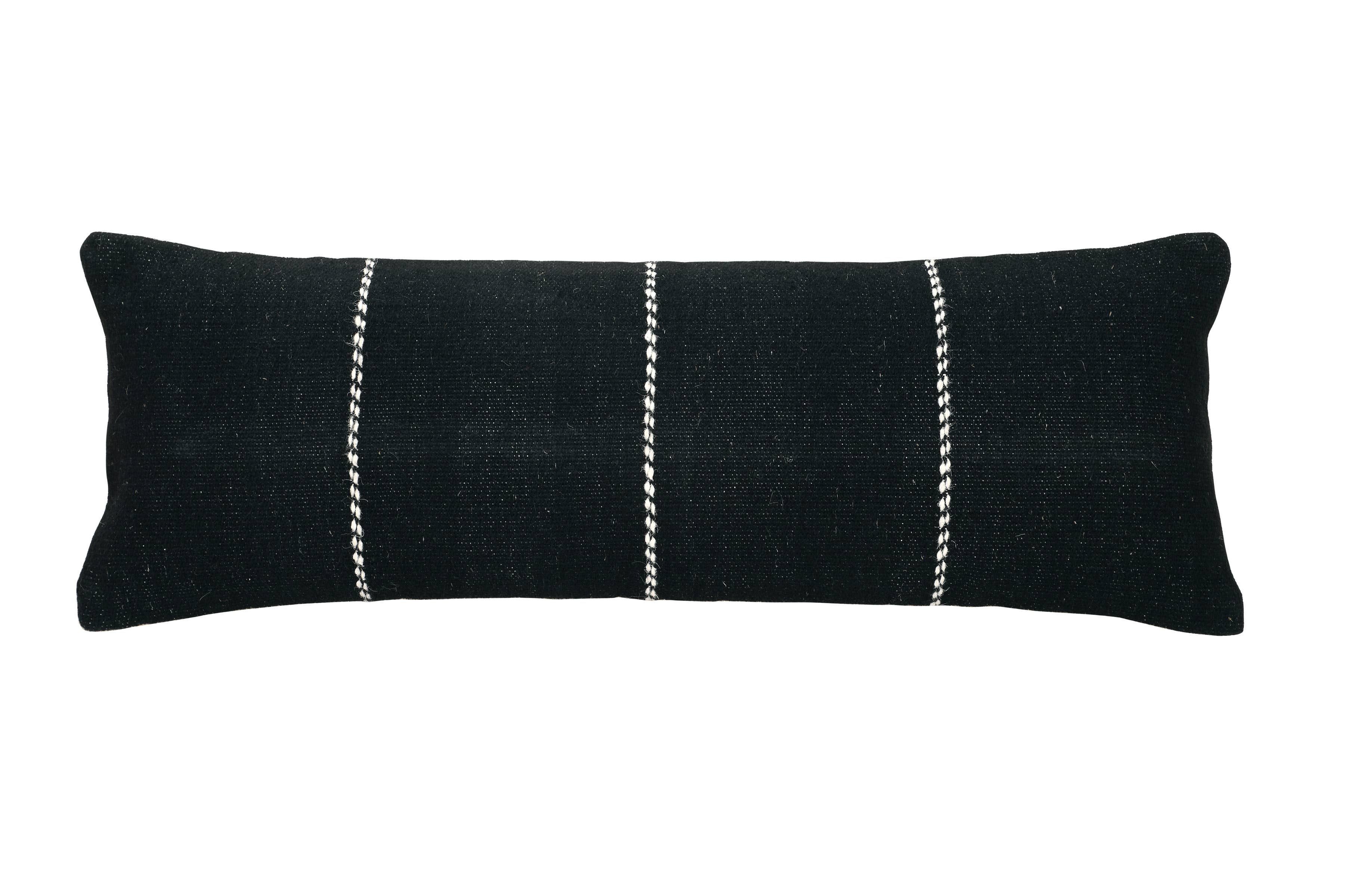 GoodWeave Certified Stripe Lumbar Wool Pillow - Black
