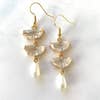 Materials rhinestones, 18k gold plated fishhooks, faux pearl Dimensions Drop length: 2 Inches; Width: 0.50 Inches These gorgeous rhinestone and faux pearl dangle earrings make the perfect bridesmaid gift! They hang about 2.0" from the lobe and measure about 0.50" at their widest point. The fishhooks are 18k gold plated and nickel free. These earrings are lightweight and should be comfortable for all day wear.
