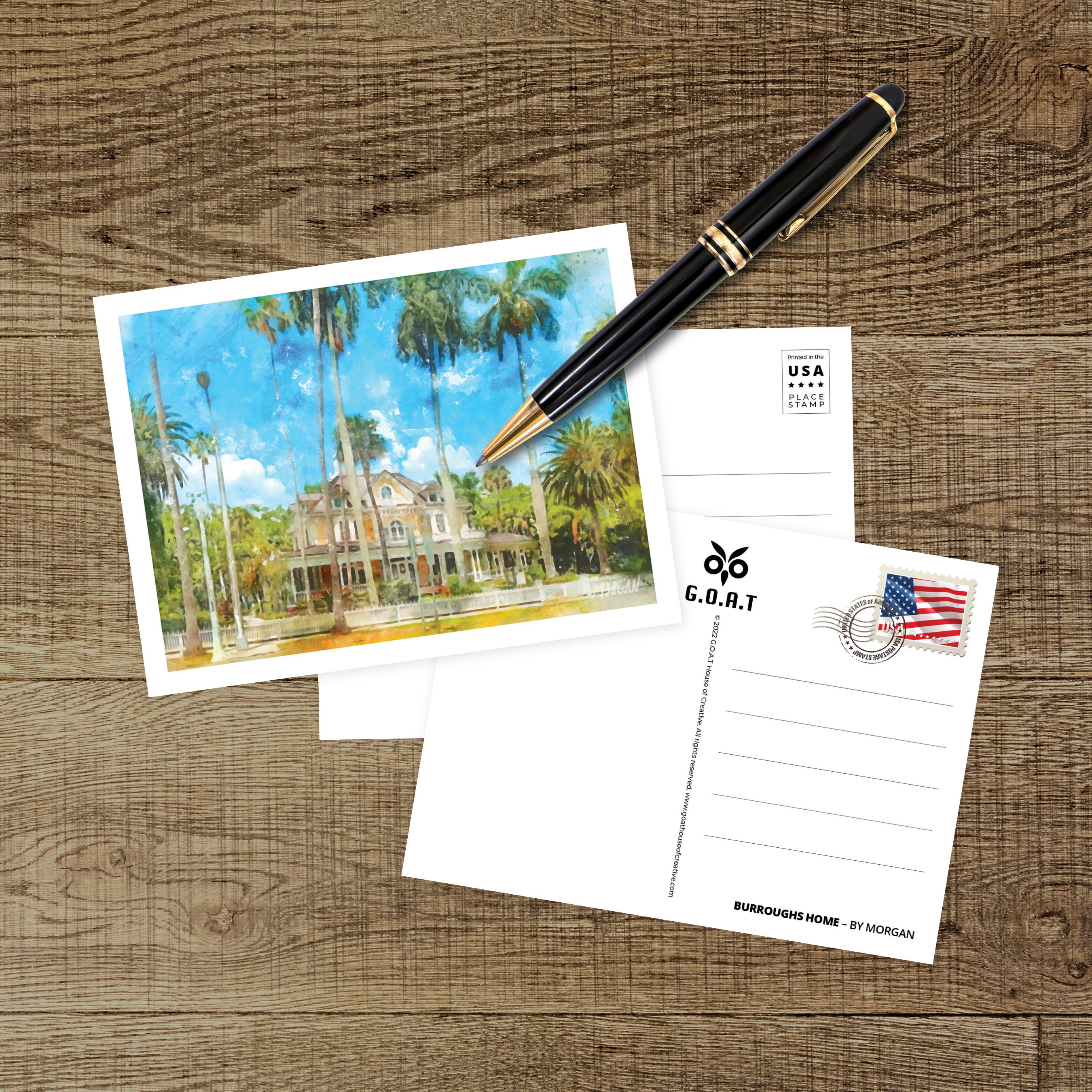 Elevate your inventory with this classic 3.5" x 5.5" postcard featuring an image from our Los Angeles collection titled Home of Clark Gable, Brentwood, California. It captures a nostalgic, vintage-inspired aesthetic that customers love. Perfect for adding a charming, retro flair to your repertoire. • Size: 3.5" × 5.5" • Available in wholesale quantities of 20 • Made in USA using biodegradable, recycled, and recyclable materials Search keywords: horizontal, landscape, linen, Highlands, movie, star, house, residence, inset