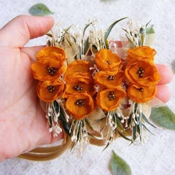 Newborn baby handmade headband. Delicate triple mini bow headband (include dry flowers) Nude one size elastic band. Every pack comes with a mix of styles like in the picture. Each headband comes in a separate bag. Because every item it's an handmade product I will do my best to send it how it's show in the picture. Sometimes the colors can be a little different ( a little darker or maybe lighter then it's show in the picture) Most of our items contains dried flowers so it will be better to be use only in the purpose of photography or when child is supervised. We don't assume responsibility for daily use.