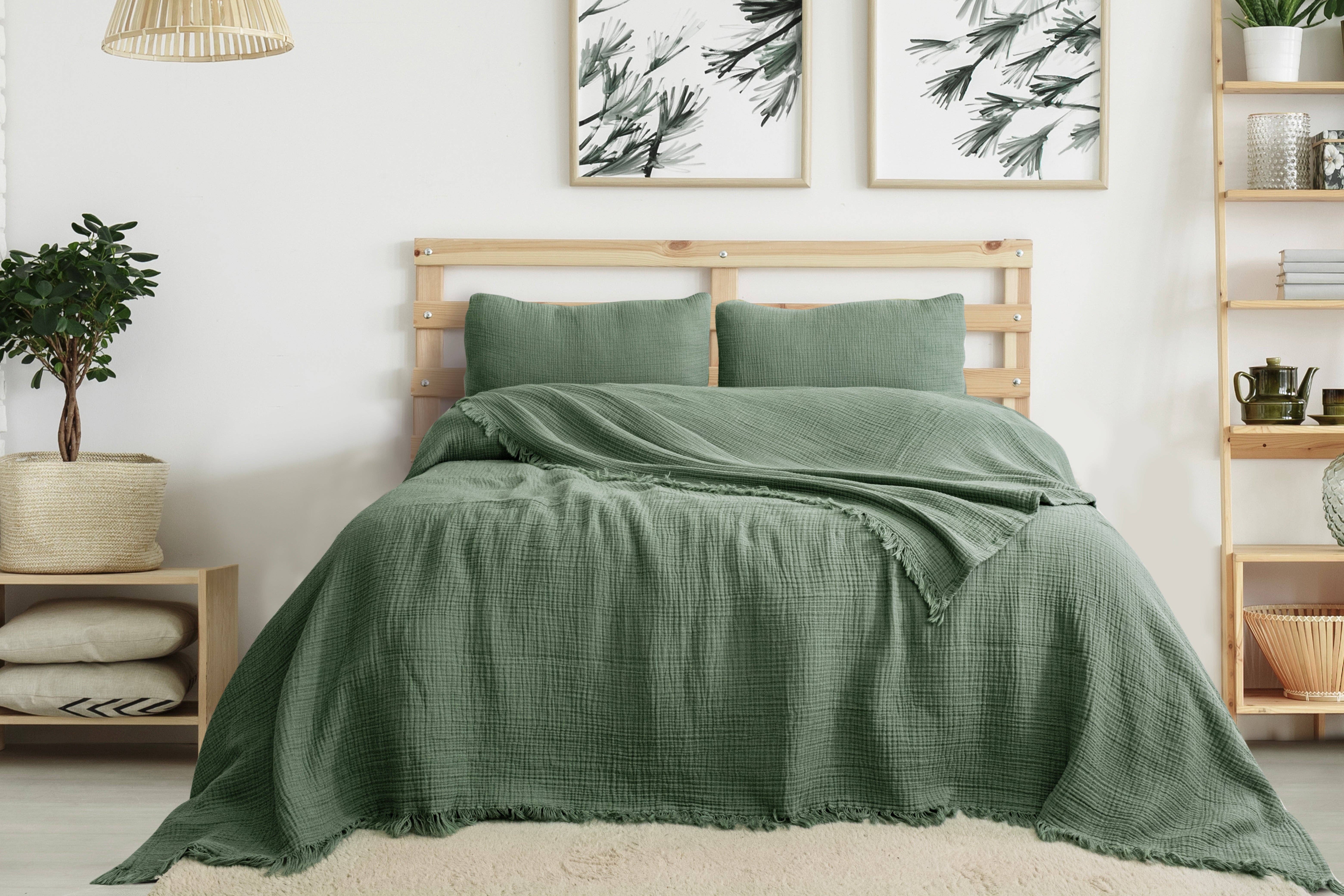 Blanket | Couch cover | Sofa cover | Throw blanket Linen-cotton blend blanket in forest green color. Add a layer of coziness to your bed with this blanket that comes in a cozy waffle weave. Style it as a bed throw or use it as a wrap when you get cold. The natural properties of linen guarantee the feeling of comfort all year round. Please note that due to the many variations in monitors and browsers, actual colors may vary. • Includes one blanket • Made from linen (53%) and cotton (47%) blend • Midweight linen (approx. 190 gsm) • Stone washed for maximum softness • OEKO-TEX certified