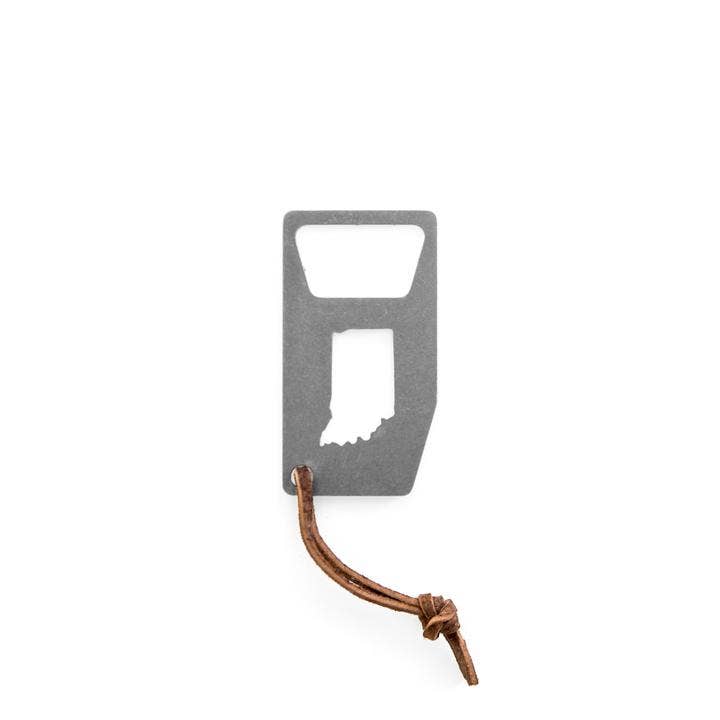 Our state bottle openers are made in the USA and designed to be a durable, utilitarian accessory. We precision cut each opener out of 14 gauge steel, working with local makers out of Minneapolis. Every piece is then tumbled for a satin finish and hand assembled resulting in a unique and quality product we proudly call our own. Includes: 14 gauge steel bottle opener, key ring, leather strap, gift tag.