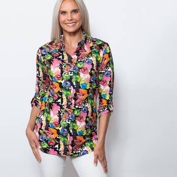 Our Mini Pleat Blouse is great for layering or alone. The flutter hem fit flatters EveryBody! Match to our Satin Mini Pleat Skirts in matching prints and coordinating solids for perfect travel outfits. One Size fits S-XL 100% Polyester Satin